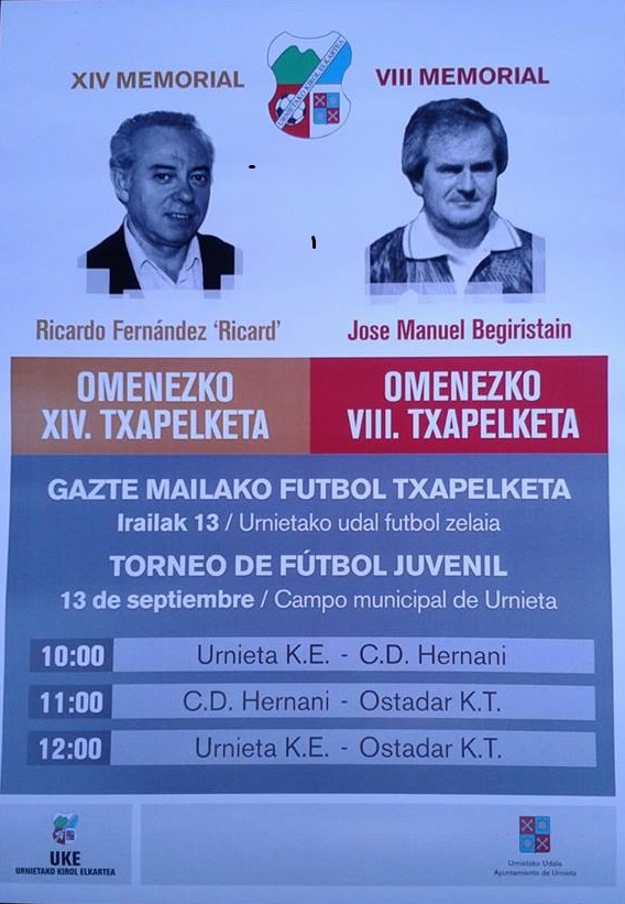 Datorren larunbata, irailak 13, urtero Urnieta Kirol Elkarteak prestatzen duen omenaldia ospatuko da Ricardo Fernandez eta Jose Manuel Begiristainen omenez udal kiroldegian.